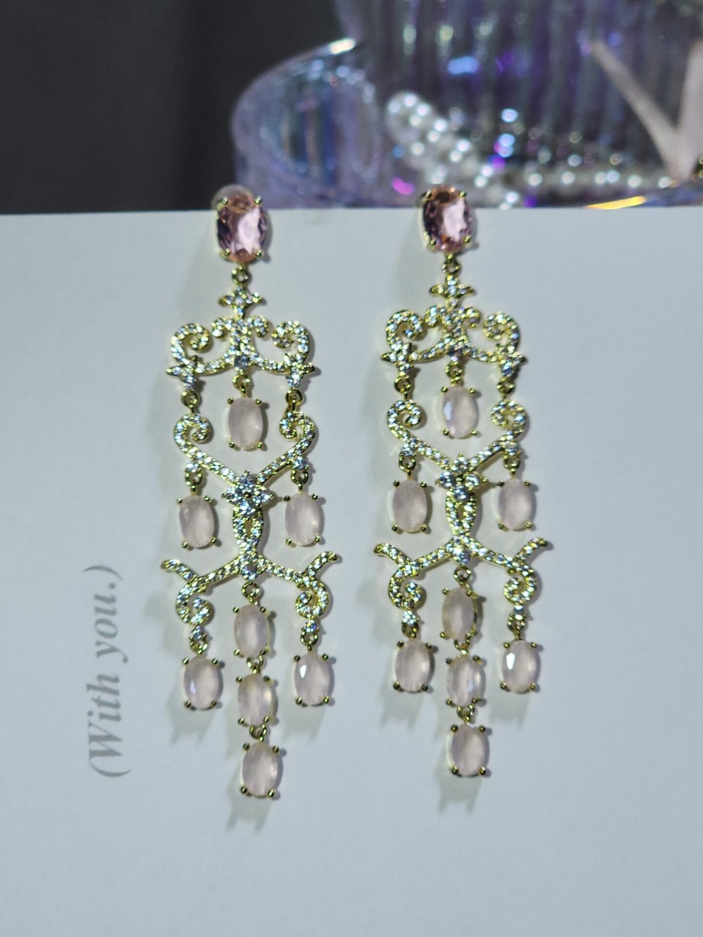 Aretes de lujo con gemas en zirconia cúbica y aguja en plata S925.